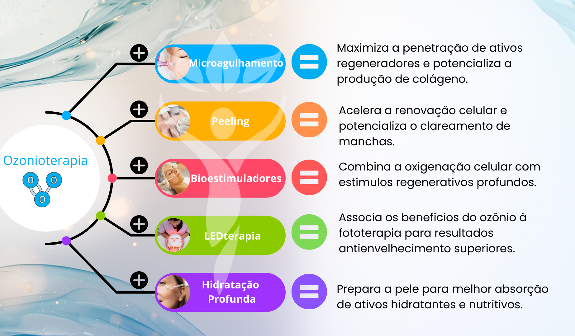 A ozonioterapia pode ser combinada com outros procedimentos, potencializando os resultados.
